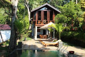 10 rooms, dining pavilion, lounge, library, swimming pool, garden, spa, complimentary daily yoga.